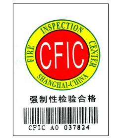 3、消防員滅火防護服作為強制檢驗產(chǎn)品,應在產(chǎn)品上加施強檢標志,應在每件消防員滅火防護服舒適層標簽旁縫制一個強檢標志,分體式的尚需在防護褲子舒適層褲袋處縫制一個相同的標志,如圖所示,尺寸應為60mm×90mm。同時,將一件新的消防員滅火防護服,平鋪在桌面上,打開拉鏈,在防護服的內(nèi)側即舒適層上查看是否有國家消防裝備質(zhì)量監(jiān)督檢驗中心的批檢標志,并記錄下批檢號,從檢驗中心網(wǎng)站上查詢該生產(chǎn)企業(yè)的批檢合格號碼的范圍,確認其真實性。
