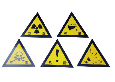 ·用于災(zāi)害事故現(xiàn)場(chǎng)警戒警示,每套由有毒、易燃、泄漏、焊炸、危險(xiǎn)等五種標(biāo)志牌組成,圖案為反