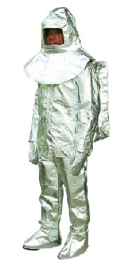 ●用于熱輻射場所的全身防護。面料為鋁箔復合阻燃織物,襯里為天然纖維織物,具備抗輻射熱滲透性能:內(nèi)表面溫升小于25度。具有阻燃、耐高溫、質(zhì)輕、柔軟、抗?jié)B水等性能。在800-900度熱輻射下,70%熱量返回,裝配牢固,重量:2kg。
