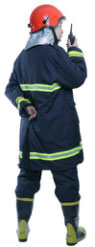滿足現(xiàn)行GA10-2014標(biāo)準(zhǔn)。藏藍(lán)色,產(chǎn)品由表面層、防水透氣層、隔熱層、舒適層四層結(jié)構(gòu)組成。重量2.807kg。具備阻燃、防水、透氣、隔熱、耐染、防靜電和標(biāo)識(shí)強(qiáng)等性能。整體熱防護(hù)性能TPP值:35 cal/cm2。外層:使用XT3900/PMIA三合一對位芳綸和間位芳綸混紡的芳綸材料,外層斷裂強(qiáng)力經(jīng)向1384N、緯向1061N,撕破強(qiáng)力經(jīng)向236.9N、緯向167.5N。防水透氣層為芳綸氈覆合PTFE膜,洗滌25次后拒油達(dá)4級(jí)。隔熱層:隔熱層為芳綸水刺氈。舒適層為50%芳綸與50%阻燃粘膠混紡材料。防水透氣層:為優(yōu)質(zhì)PTFE薄膜。耐靜水壓大于50000Pa,水蒸氣透過量5621g/㎡.24h,熱穩(wěn)定性能經(jīng)2600C,5分鐘處理后收縮率為1.0%。各項(xiàng)性能指標(biāo)符合GA10-2014《消防員滅火防護(hù)服》標(biāo)準(zhǔn),每套均有國家認(rèn)可的唯一強(qiáng)檢標(biāo)志,并經(jīng)國家消防裝備質(zhì)檢中心檢測通過的合格產(chǎn)品。產(chǎn)品提供檢驗(yàn)報(bào)告和3C認(rèn)證。